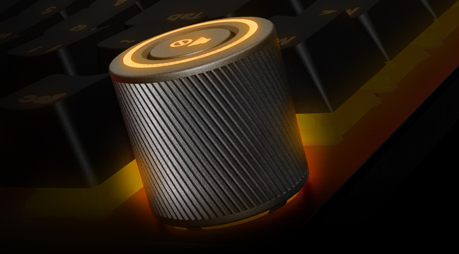 3D MEDIA WHEEL And mechanical macro keys Take control of your music and videos with a programmable aluminum 3D Media Wheel. By default, it controls the volume, and you can press it to mute and unmute. A total of 5 mechanical macro keys can be programmed to control the rest of your media or set to game-specific actions. | ![]() |