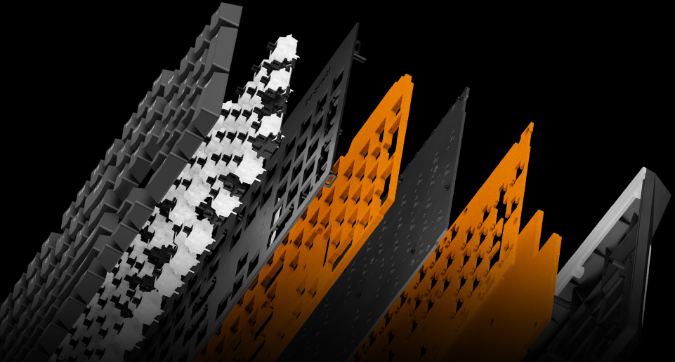 ![]() | STRIKING LIGHTING Per-key glow effect Light Mount’s customization options are maximized with per-key ARGB lighting. Highlight important keys or create stunning effects. The translucent legends of the double-shot keycaps shine brilliantly thanks to an arched diffuser in each switch. The top edge of the keyboard also glows in your favorite colors, while ARGB LED strips on the sides provide a subtle underglow effect. This keyboard goes well with any RGB gaming PC. |