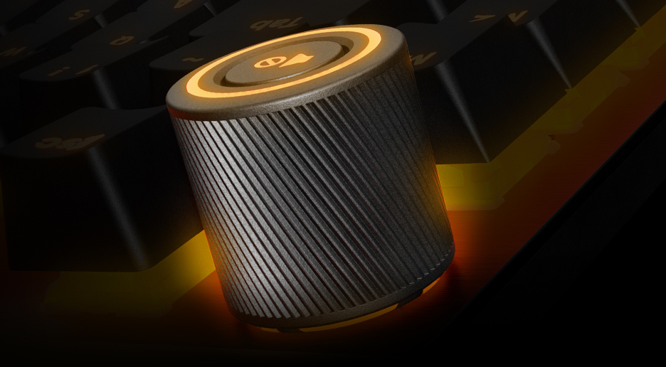 3D MEDIA WHEEL And mechanical macro keys Take control of your music and videos with a programmable aluminum 3D Media Wheel. By default, it controls the volume, and you can press it to mute and unmute. A total of 5 mechanical macro keys can be programmed to control the rest of your media or set to game-specific actions. | ![]() |