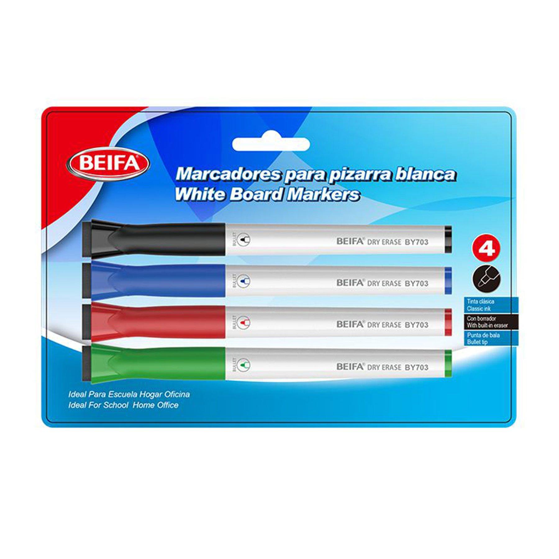 Beifa Борд маркер за бяла дъска BY703-C301, с гъбичка на капачката, комплект от 4 цвята