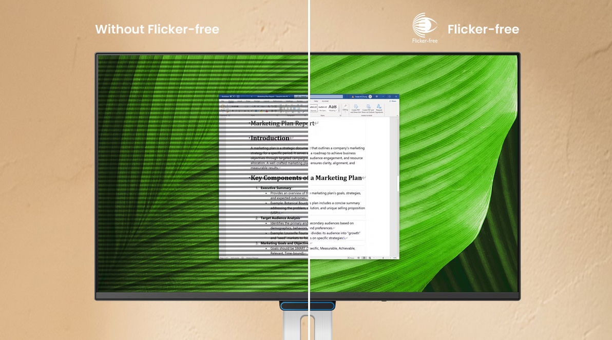 We Cut Blue Light, Not Color Quality | Say Goodbye to Invisible Flicker Even screens that seem perfectly fine can flicker—too subtle for you to see, but not for your eyes. BenQ’s TÜV-certified Flicker-Free technology keeps the screen steady and your eyes comfortable, even during long workdays. |