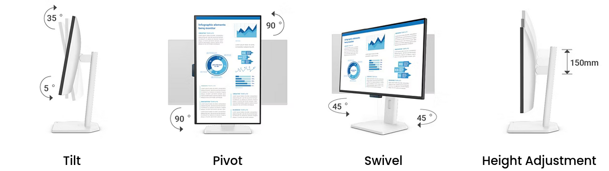 The GW2790TC offers more freedom with height, tilt, pivot, and swivel adjustments for a better and more comfortable working experience.