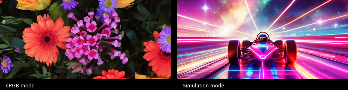 Simulation, 3D, Bright, HDR10, HLG, Presentation, sRGB, User 1, User 2, Vivid