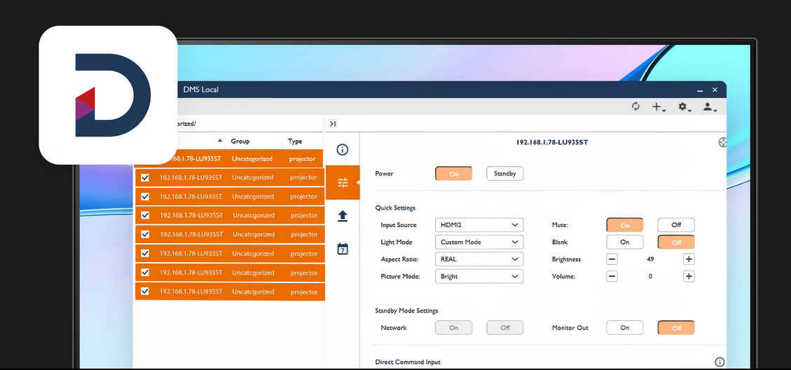 Remote Monitoring and Diagnostics Easily track projector status and diagnose issues remotely, eliminating frequent on-site visits. | Firmware Management Over Network Easily update all projectors via LAN to keep firmware current without physical access. | Reliable Performance, Less Maintenance Ensure long-term stability, freeing SI teams to focus on creative installations rather than routine upkeep. |