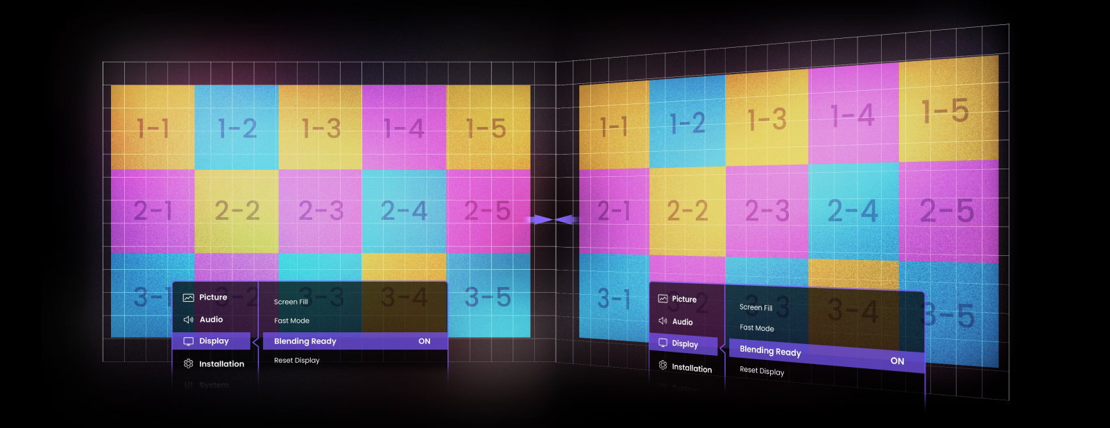 One-click preset in the OSD that applies key settings to prepare images for multi-projector blending.