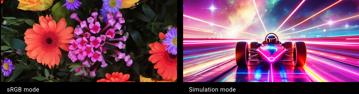 Simulation, 3D, Bright, HDR10, HLG, Presentation, sRGB, User 1, User 2, Vivid