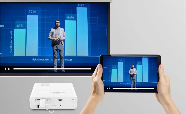 - Instant sharing of FHD content wirelessly w/o software or apps