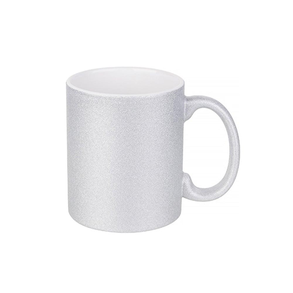 BESTSUB Чаша, глитер, сребриста, 330 ml, с възможност за персонализация