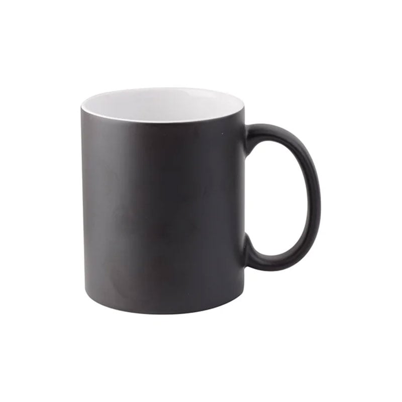 • Впечатляваща керамична магическа чаша с черен матов външен слой, който се променя при добавяне на гореща напитка.