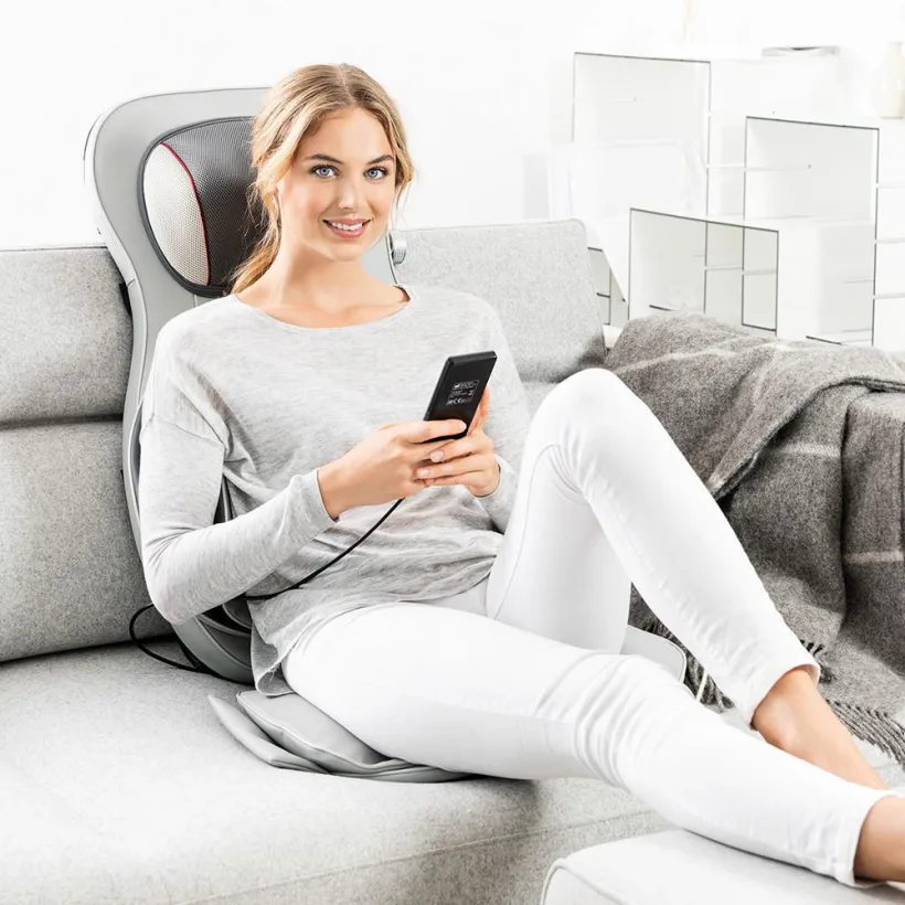 3-in-1 massage seat cover with penetrating Shiatsu, air compression & spot massage Whether after a stressful day at work or a strenuous workout, the MG 320 Massage Seat Cover from Beurer transforms any seat into a place of relaxation. During the treatment, you can choose between different massage areas along your whole spine and set the massage intensity of the air pressure massage to one of 3 levels. The optional light and heat function relieves even the most stubborn tension in the back and neck and helps you to recover from the stresses of everyday life. | ![]() |