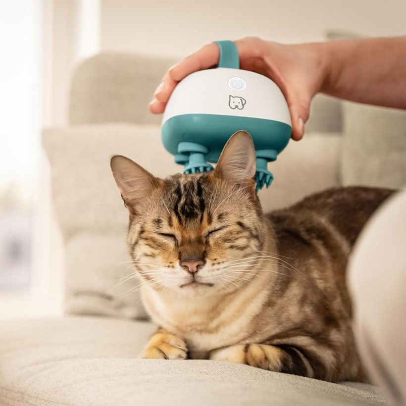 Масажорът "Buddy" ви позволява да поглезите котката или кучето си с нежен масаж, който може да намали стреса и да насърчи релаксацията. Меките силиконови глави осигуряват нежен масаж, без да дърпат или усукват козината - те са идеални и за деликатна козина. Благодарение на тихата настройка на скоростта, масажорът е идеален за чувствителни животни и осигурява спокойни моменти на благополучие още от първата употреба.