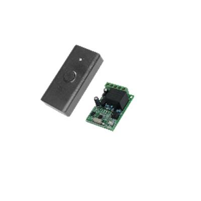 Безжичен exit бутон с 433MHz приемник с променлив код. Максимален обхват при пряка видимост 50m. Диодна индикация. Захранване на приемника: DC12V/15mA, захранване на бутона: 1х 2032 батерия. 1x Релеен NO/NC изход 5A. PVC корпус с размери на бутона: 40x83x15mm. Работна температура: -10°~55°C.