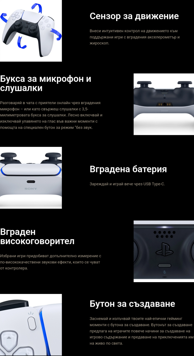 Игралните светове оживяват с безжичен контролер DualSense за конзола PlayStation 5