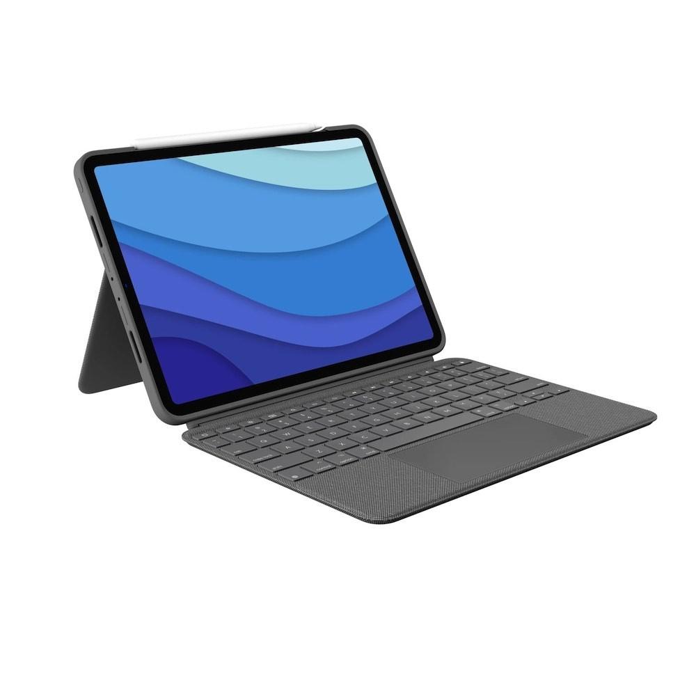 Безжична клавиатура с тракпад и отделящ се кейс с поставка за iPad Pro 11 M2 (2022), iPad Pro 11 M1 (2021), iPad Pro 11 (2020), iPad Pro 11 (2018) - Logitech Combo Touch UK (сив)