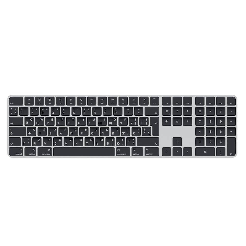 Безжична клавиатура за Mac компютри (тъмносив-черен) - Apple Magic Wireless Keyboard with Touch ID and Numeric Keypad Ukrainian (модел 2022)