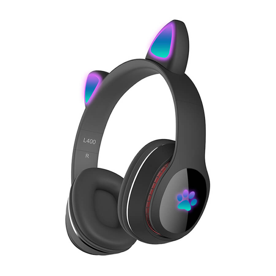 Налични LED светлини на самите уши, които светят, когато слушалките работят