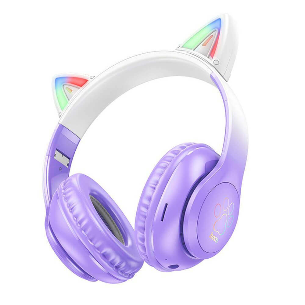 Безжични блутут слушалки, подходящи за деца - Hoco Cat Ear Kids Wireless Over-Ear Headphones (лилав)