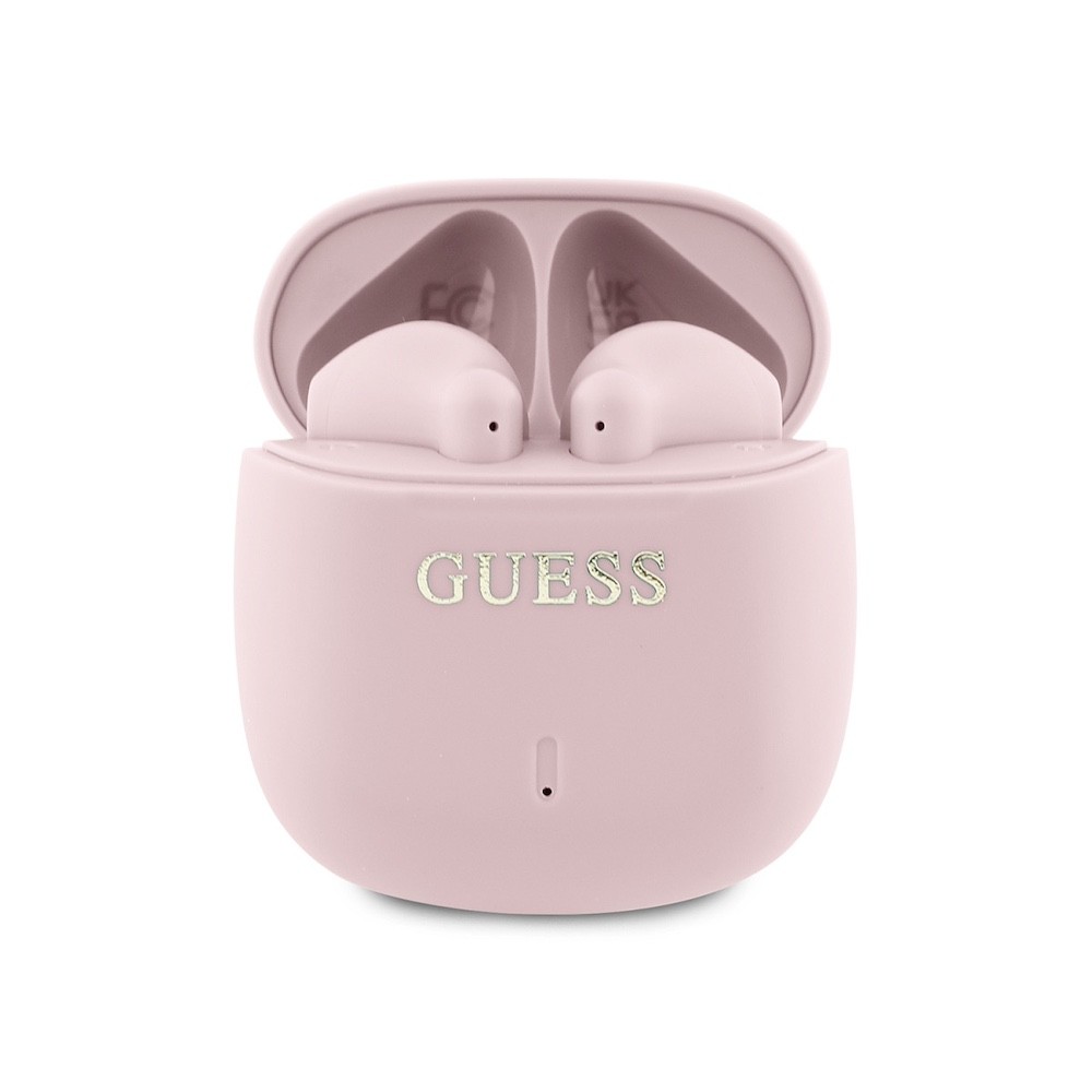 Безжични блутут слушалки със зареждащ кейс за мобилни устройства - Guess Printed Classic Logo Stereo TWS Headset (розов)
