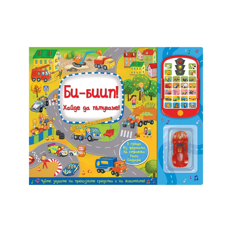 Би-биип - Хайде да пътуваме, книга със звуци, с подарък количка