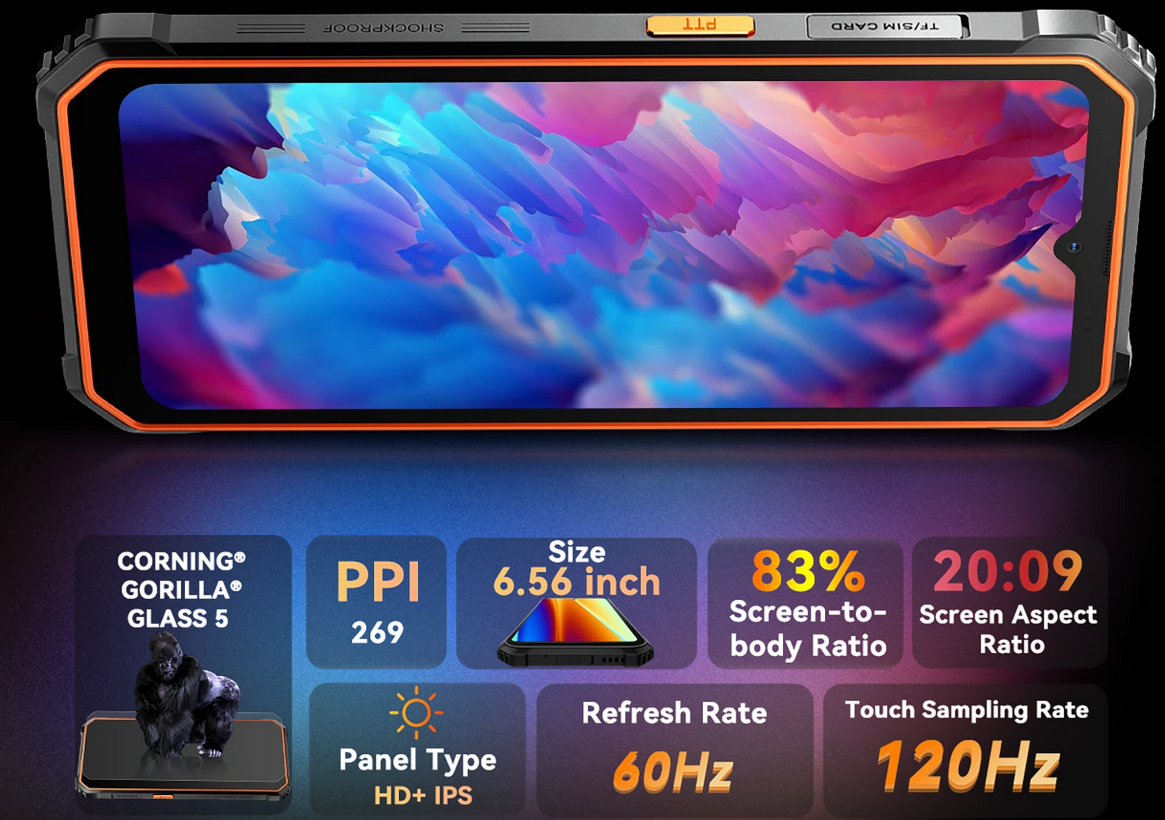 | Display | 6.56-inch, 60Hz Refresh Rate 720*1612 Resolution CORNING GORILLA*GLASS 5 |