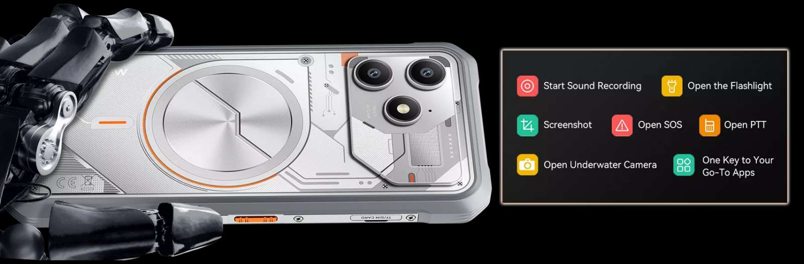 Customize your side key for quick access to any app or tool — flashlight, screenshot, SOS, or underwater camera — so control is always at your fingertips.