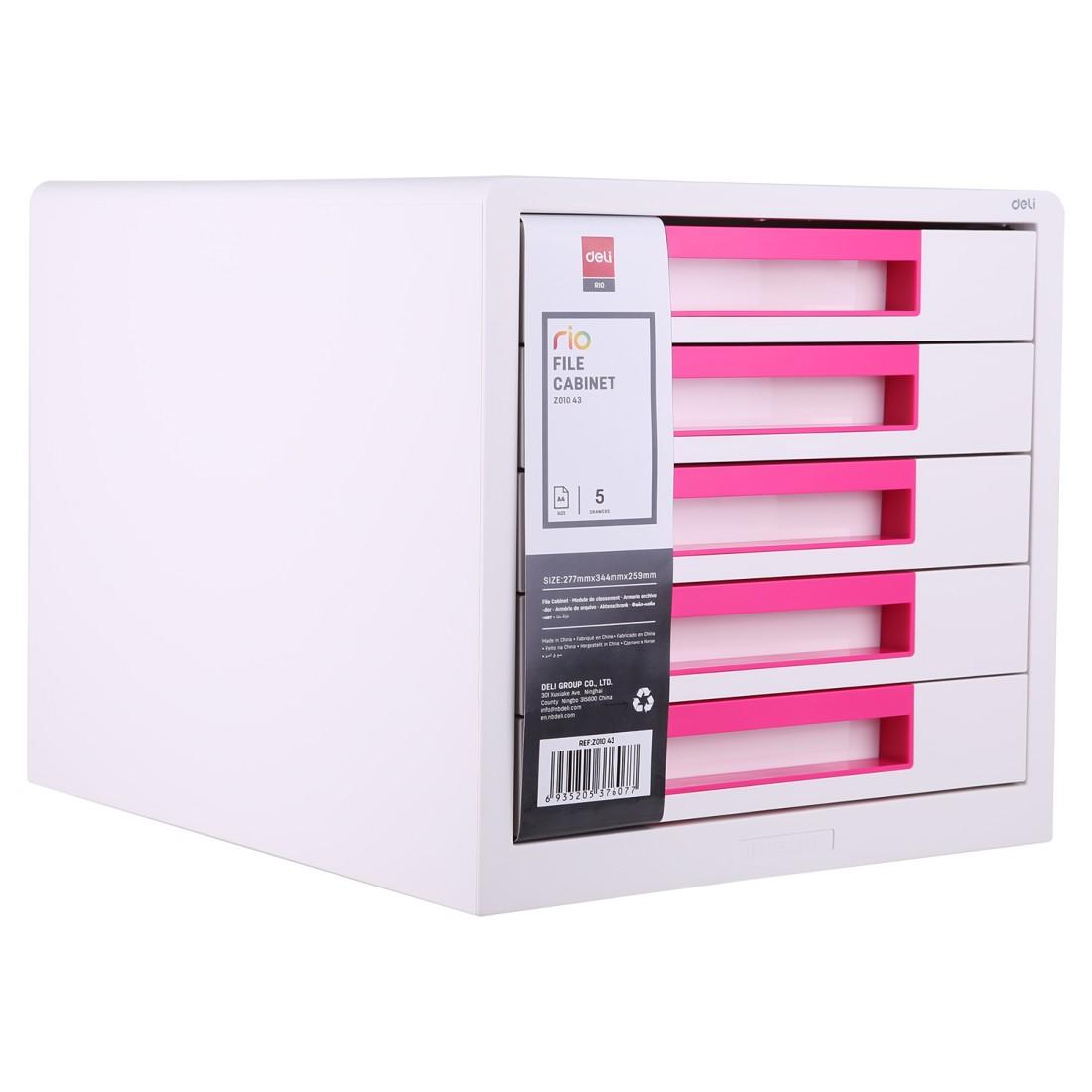 Бокс с 5 чекмеджета Deli Rio, EZ01043, 277x344x259 мм, PP, сиво и розово