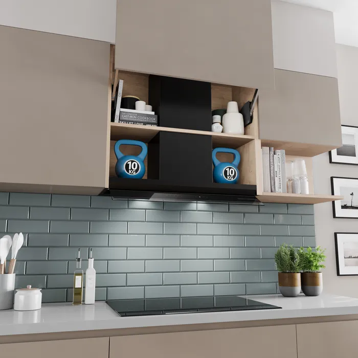Максимизирайте потенциала на кухнята си с нашия интегриран абсорбатор. С Т-образния си дизайн предлага допълнително пространство за съхранение с капацитет на натоварване до 20 кг—по 10 кг на всяка страна. Наслаждавайте се на свеж въздух и дръжте предметите си на лесно достъпно място, без да жертвате ценно пространство в шкафовете. Този интелигентен, ефективен абсорбатор съчетава функционалност и удобство, правейки кухнята ви по-организирана и готварския ви опит още по-добър.