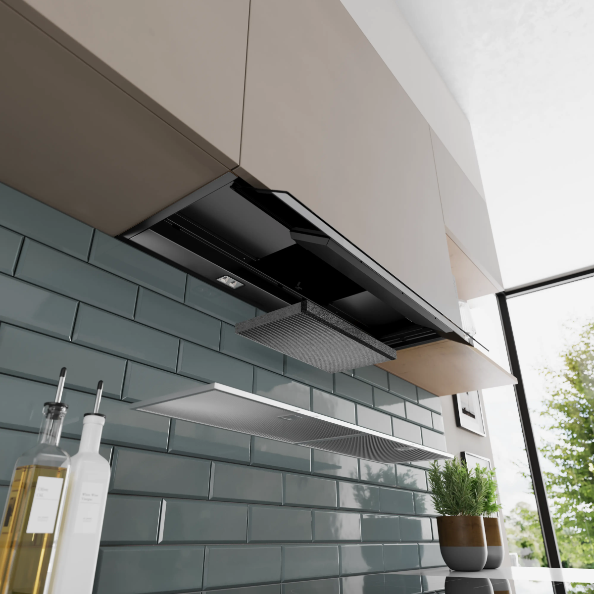 Искате чиста, минималистична кухня? Нашият интегриран абсорбатор предлага безпроблемна интеграция, сливайки се перфектно с вашето пространство чрез вградена инсталация в горен шкаф. Кажете сбогом на обемистите абсорбатори и здравейте на стилното, ненатрапчиво решение, което все пак осигурява мощно представяне.