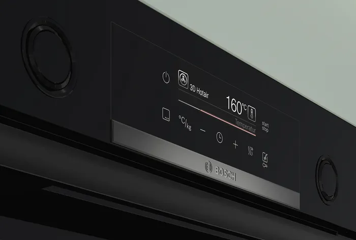TFT сензорният дисплей ви позволява бързо да стигнете до правилната настройка. Ясно организираният дисплей с текст и символи ви улеснява в работата с вашата фурна Bosch.