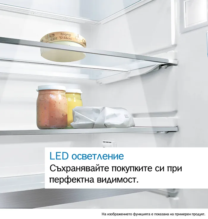 С LED осветлението няма да пропуснете нищо в хладилника си. Дълготрайното, енергийно ефективно LED осветление осигурява ярка, равномерна светлина в целия интериор за перфектна видимост. Ако хладилникът разполага с технологията Home Connect, можете да управлявате LED осветлението чрез приложението. Просто го включете или изключете с мобилното си устройство или регулирайте яркостта според нуждите си. Не позволявайте на слабото осветление да ви попречи да намерите това, от което се нуждаете - модернизирайте хладилника си със LED осветление още днес.
