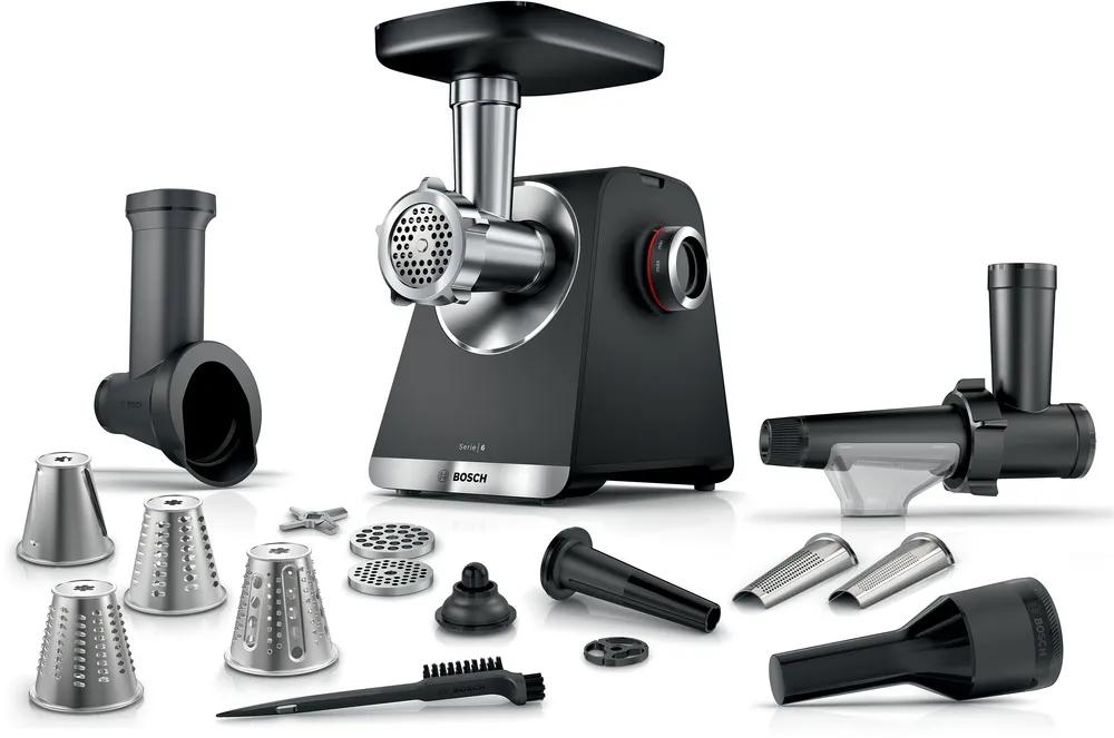 Bosch MFWS660B, SER6, Meat mincer - MultiPower 2100 W, Planetary gearbox, 3,5 kg/min, kebbe attachment, sausage attachment, fruit press attachment, shredding attachment, reverse function, Black