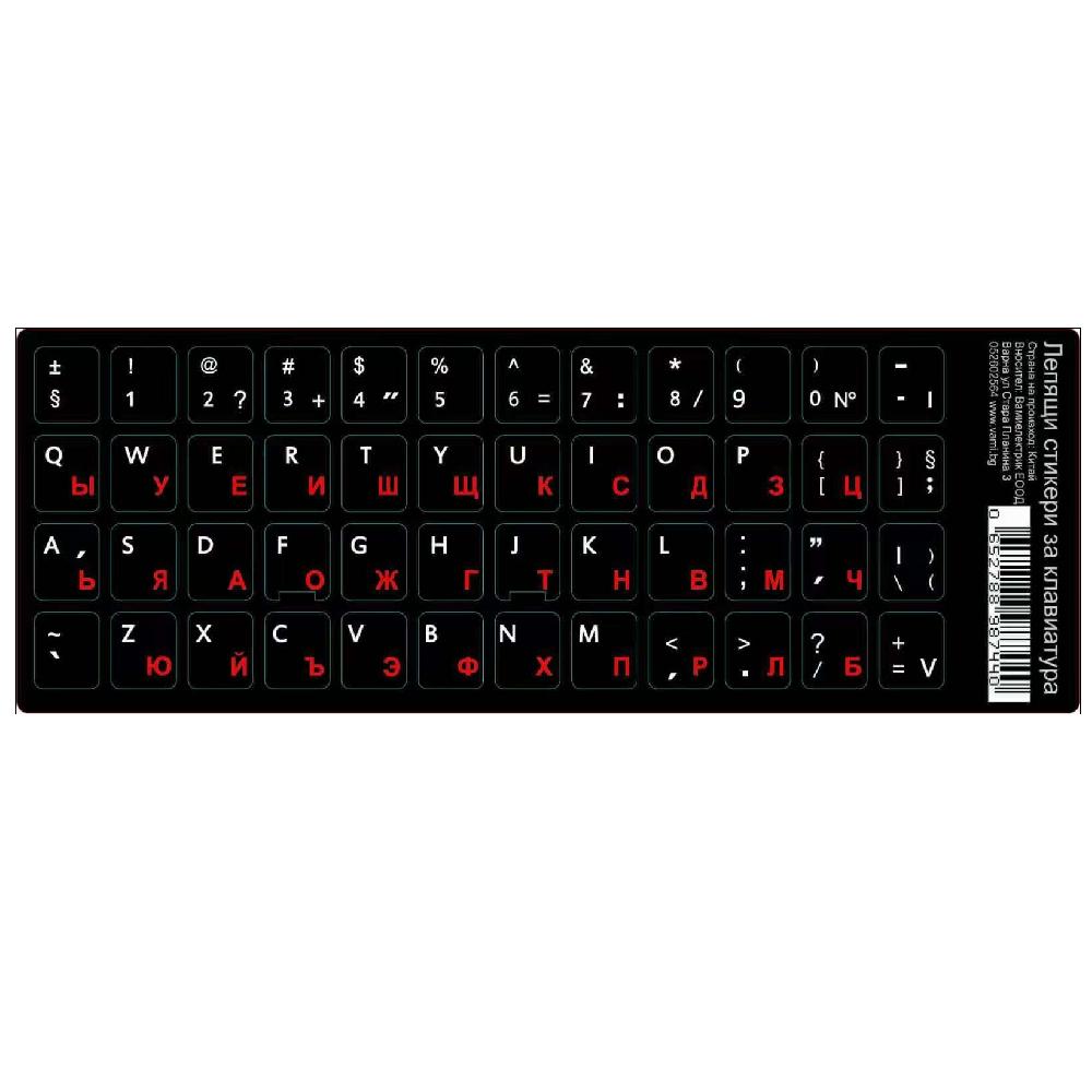 Стикери на Кирилица\n\nКомплектът съдържа 43 стикера за клавиши\nПредназначен за лаптопи без кирилица, изтрити букви на клавиатура.