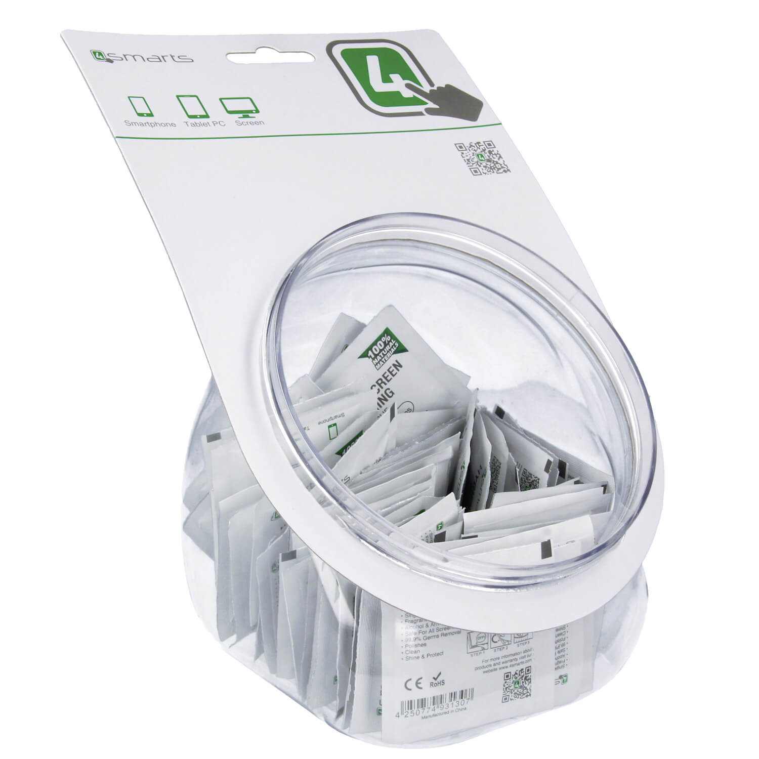 Пластмасов буркан с 50 броя броя специални антибактериални кърпички за почистване на всякакви видове дисплеи (смартфони, таблети, монитори и др. дисплей)