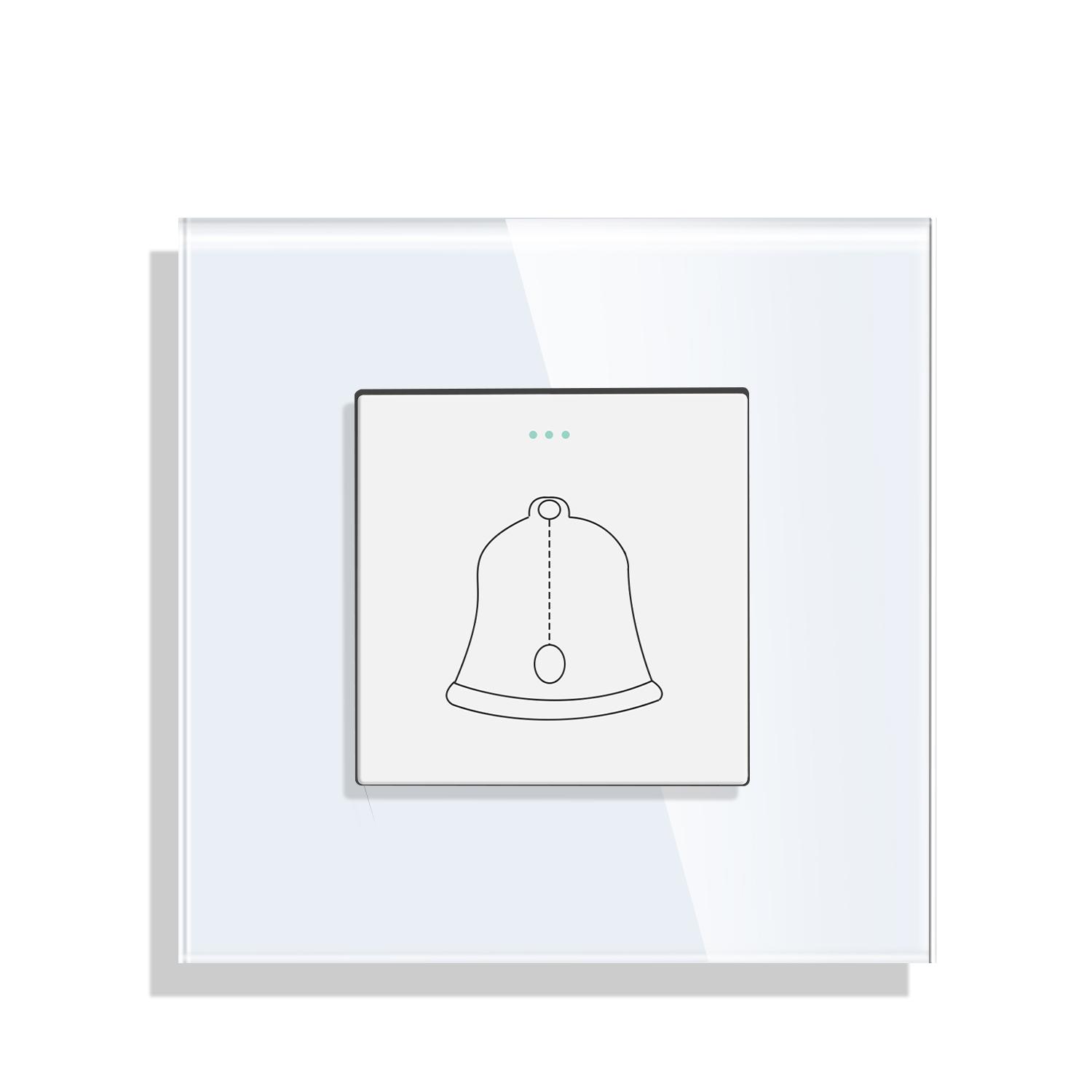 Бутон за звънец 10A /250v комплект със стъклена рамка,в обща опаковка готов за монтаж -БЯЛ