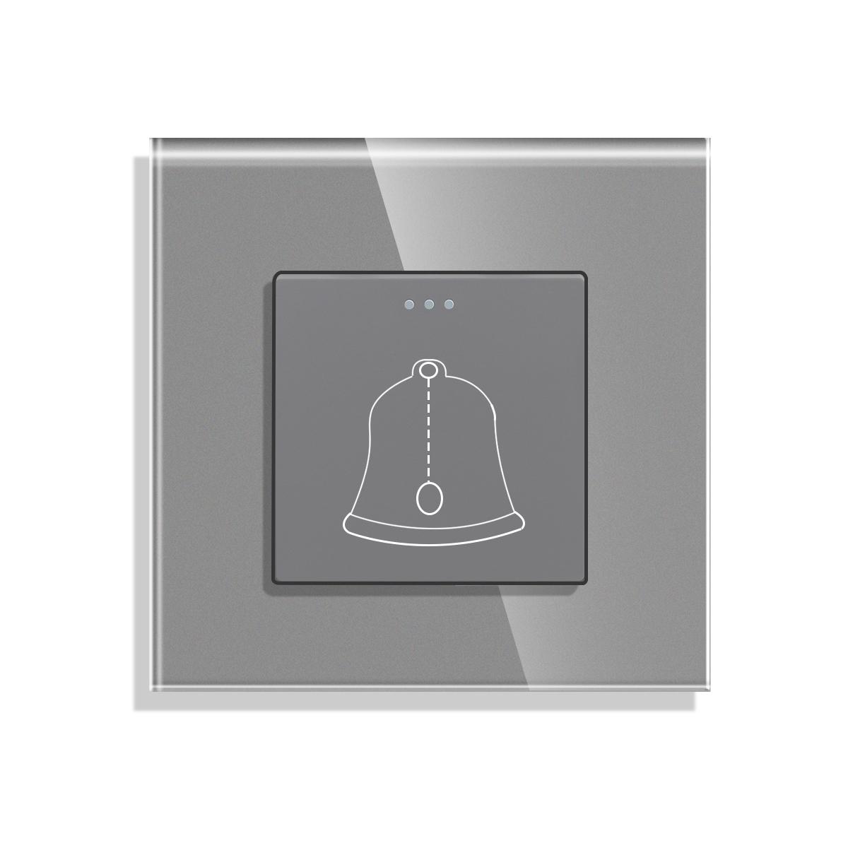 Бутон за звънец 10A /250v комплект със стъклена рамка,в обща опаковка готов за монтаж -СИВ