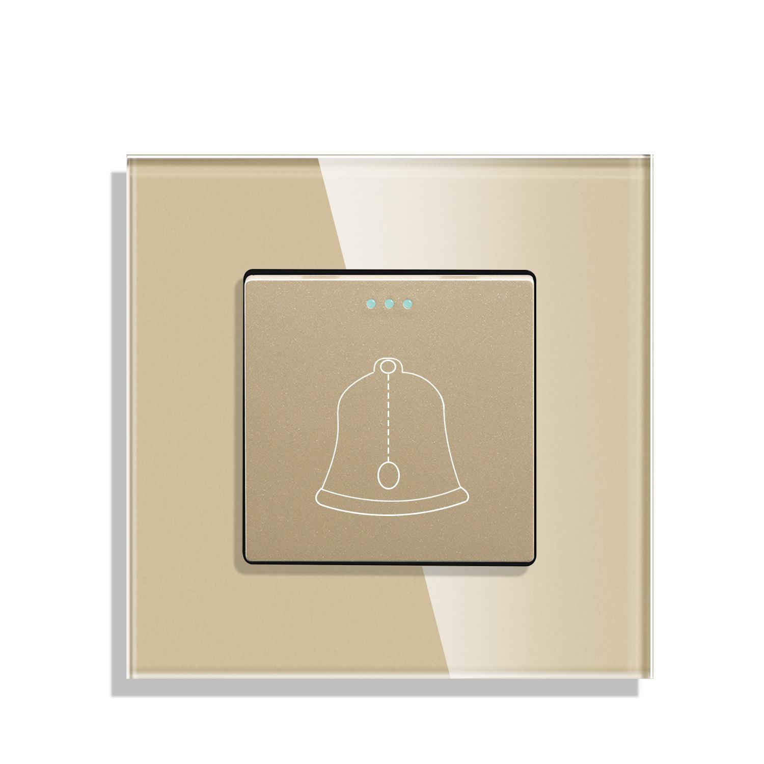 Бутон за звънец 10A /250v комплект със стъклена рамка,в обща опаковка готов за монтаж -ЗЛАТЕН