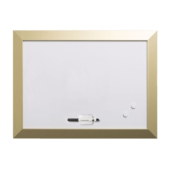 Бяла магнитна дъска Bi-Office KAMASHI Gold, 900х600 мм, златиста широкопрофилна рамка