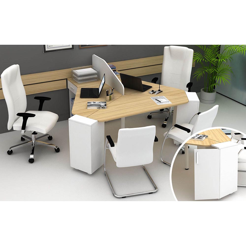 Цвят на бюрата: благороден бряст светъл, цвят на контейнерите: бял.