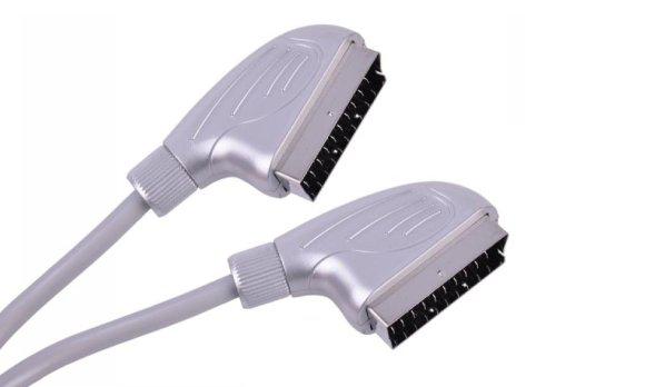 Аудио видео кабел SCART мъжки - SCART мъжки, Високоскоростен, Никелирани конектори, Цвят: сребрист, Дължина: 1.5метра