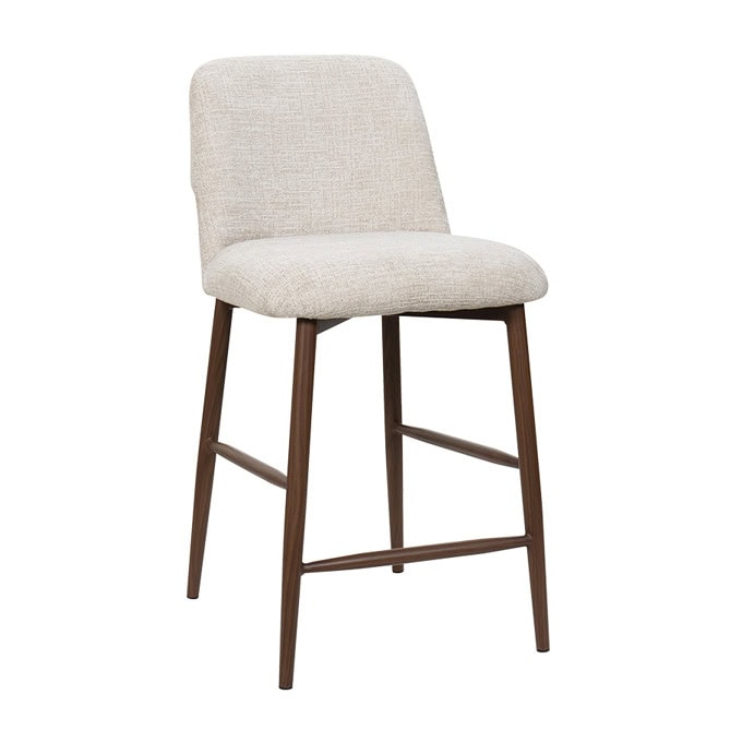 Бар стол BANBAR впечатлява с елегантен дизайн и изчистени линии, които съчетават модерна естетика с комфорт. Извивките на седалката и облегалката, тапицирани с фина дамаска, обгръщат тялото и създават усещане за мекота и стабилност. Краката от праховобоядисан метал с дървесен декор придават топло и естествено излъчване, същевременно осигурявайки здравина и устойчивост. BANBAR е перфектен избор за бар, кухня или трапезен кът с характер и стил.