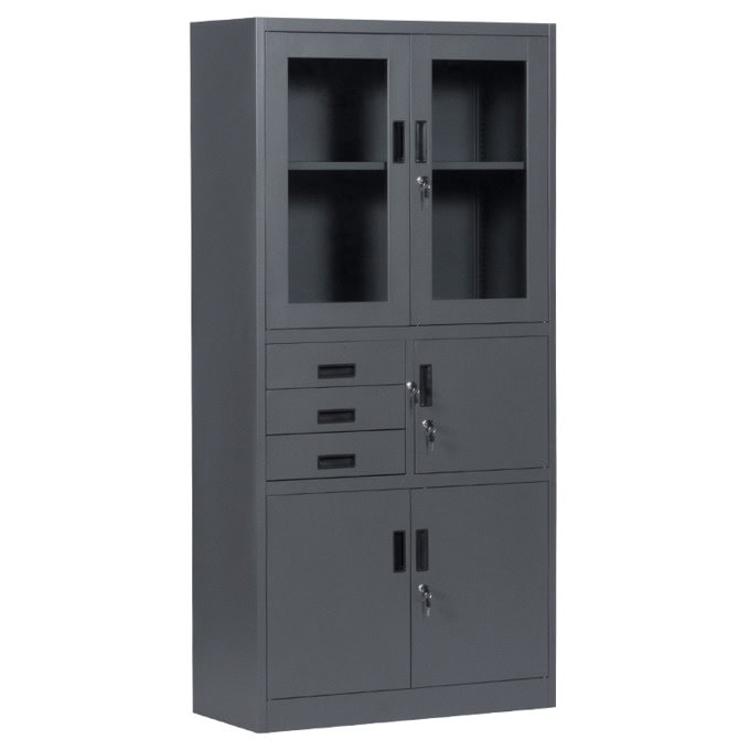 Металният шкаф за документи Carmen CR-1240 E SAND е практичен модел с удобно разпределение от два шкафа, 3 чекмеджета и 1 сейф. Всички отделения могат да се заключват. Шкафовете са с един рафт с регулируема височина и товароносимост до 40 кг.