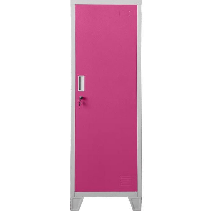 Метален шкаф Carmen CR-1604-1 JZ е практичен метален гардероб с плътна врата, която се заключва с ключ. Разполага с един рафт с товароносимост до 40 кг, вграден лост за закачалки и вентилационен отвор за по-добра циркулация на въздуха. Изработен е от праховобоядисан метал с грапаво-шагрен покритие и се предлага в комбинация от светлосив цвят с розово, синьо или оранжево. Подходящ е за оборудване на детски градини.