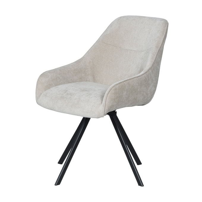 Трапезен стол MARSALA – бежов съчетава елегантност и комфорт с модерни функционалности. Тапициран е с мека дамаска, а краката са от прахово боядисан метал. Столът разполага с подлакътници и функция за въртене на 360°, което добавя допълнително удобство при сядане. Максималното натоварване е до 120 кг, което прави стол MARSALA здрав и надежден избор за трапезарията.