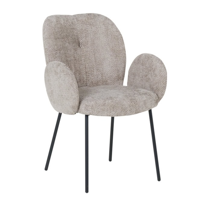 Трапезният стол OLIVER впечатлява с елегантна визия и комфорт. Облечен във висококачествена дамаска с едра текстура, той се откроява с подлакътници в интересна полукръгла форма, които придават стил и изисканост. Здравите крака от праховобоядисан метал осигуряват стабилност и устойчивост. OLIVER е съвременно решение за трапезарии с характер.