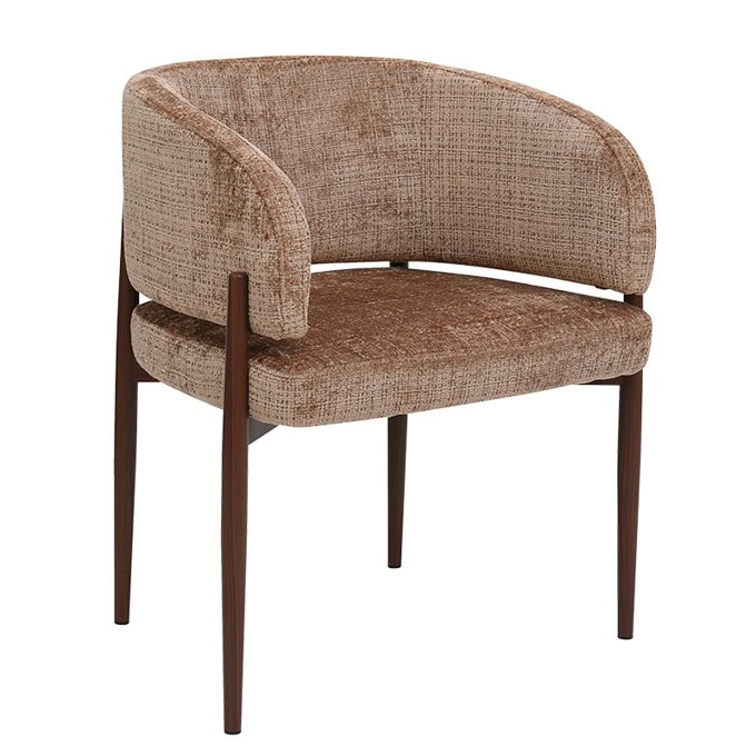 Трапезният стол RIMAR съчетава модерна визия с комфорт и прецизна изработка. Тапицираната седалка и облегалка с изчистени извивки осигуряват стабилна опора и приятна мекота при сядане. Издължените метални крака с праховобоядисано покритие в дървесен цвят допълват елегантния силует и придават изискан акцент на интериора.