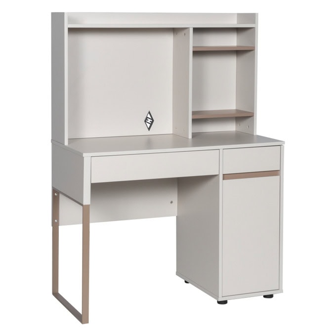 Функционалност и модерен стил, създавайки удобна работна зона за всяка детска или младежка стая. Надстройката предлага няколко отворени отделения, които осигуряват лесен достъп до книги, аксесоари и декорации. Плотът е с удобна ширина, подходящ за лаптоп или писмена работа, а страничният шкаф и чекмеджето добавят дискретно място за съхранение. Конструкцията е стабилна, а кракът от праховобоядисан метал придава съвременно излъчване.