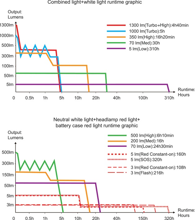 - Режими на осветяване: Е11 режима на осветяване, включително 4 нива на студена бяла светлина или топла бяла светлина, 2 режима на червена светлина и 2 режима на червена светлина в корпуса на батерията