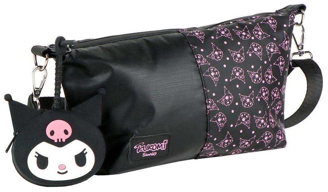 Ако сте почитатели на очарователната поредица Hello Kitty, то тогава ще харесате тази невероятна чанта от компанията Cerda. Тя е с чудесен дизайн, който е вдъхновен от дяволитата и свободолюбива Kuromi. Тя е съперничка на очарователното и грижовно зайче My Melody и цели да възкреси Духа на Тъмната сила. Нейното слабо място е опашката ѝ и би изпаднала в безсъзнание, ако някой я настъпи или я дръпне. Чантата е изработена от полиестер и PVC и е с размери 27 х 17 х 9.5 cm. Тя е с регулируема дълга презрамка и разполага с едно отделение. Към чантата е включено и портмоне за монети, вдъхновено от лицето на Kuromi, което може да се премахва. Комплектът е официално лицензиран и изработен с внимание към детайлите, което го прави идеален избор за подарък. Страхотно допълнение към всяка Hello Kitty колекция.