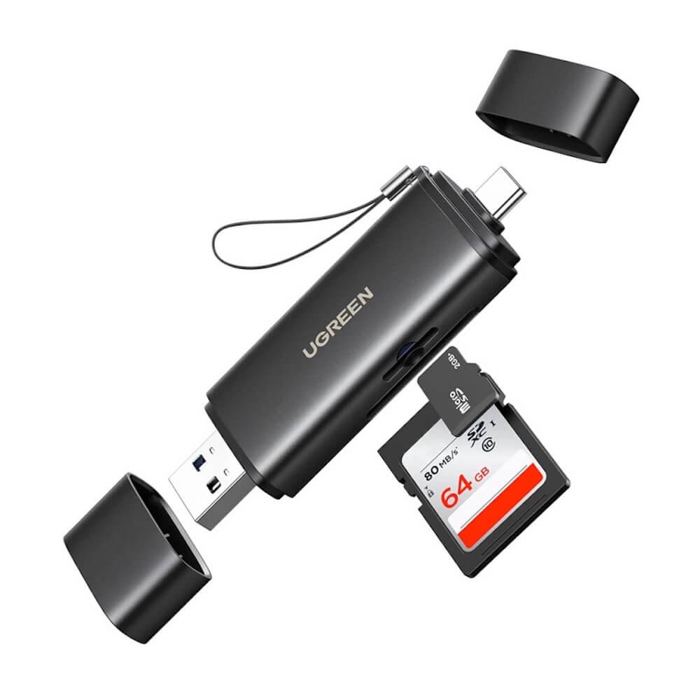 Четец за microSD и SD карти памет за мобилни устройства - Ugreen USB-A And USB-C Card Reader (черен)