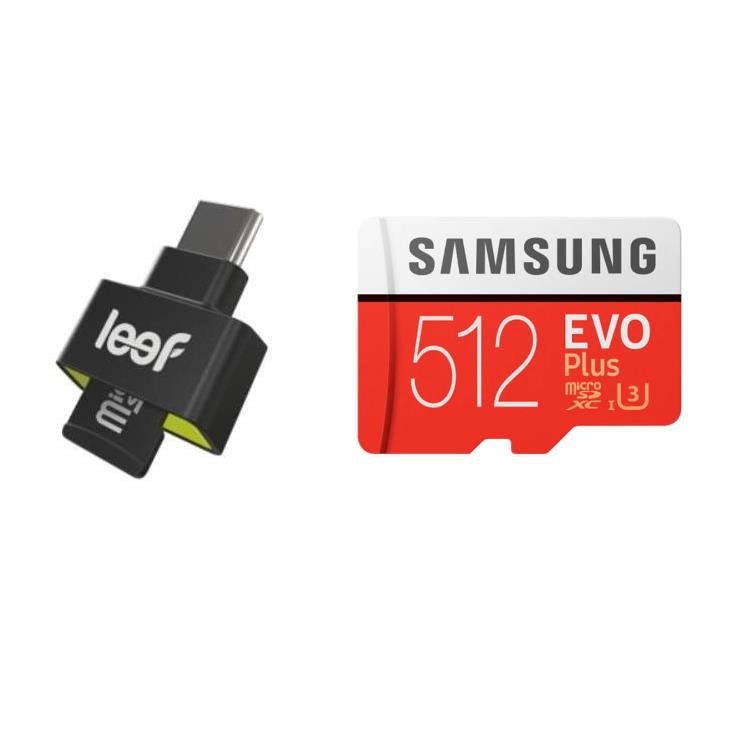 В комплекта: - Leef Access-C microSD Card Reader - Samsung MicroSD 512GB EVO Plus UHS-I (U3) Memory Card - Samsung MicroSD към SD преходник/адаптер